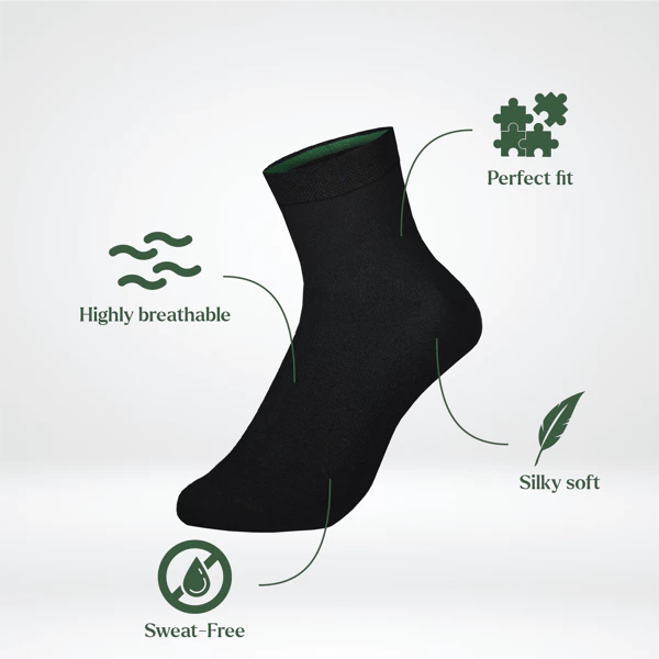 2. Åndbar og fugtregulerende: Bambus har fremragende åndbare egenskaber og kan absorbere op til tre gange mere fugt end bomuld. Det betyder, at dine fødder forbliver tørre og behagelige i længere tid, selv under intense aktiviteter eller på varme dage. Sokkerne hjælper med at reducere sved og forhindrer, at dine fødder føles klamme.